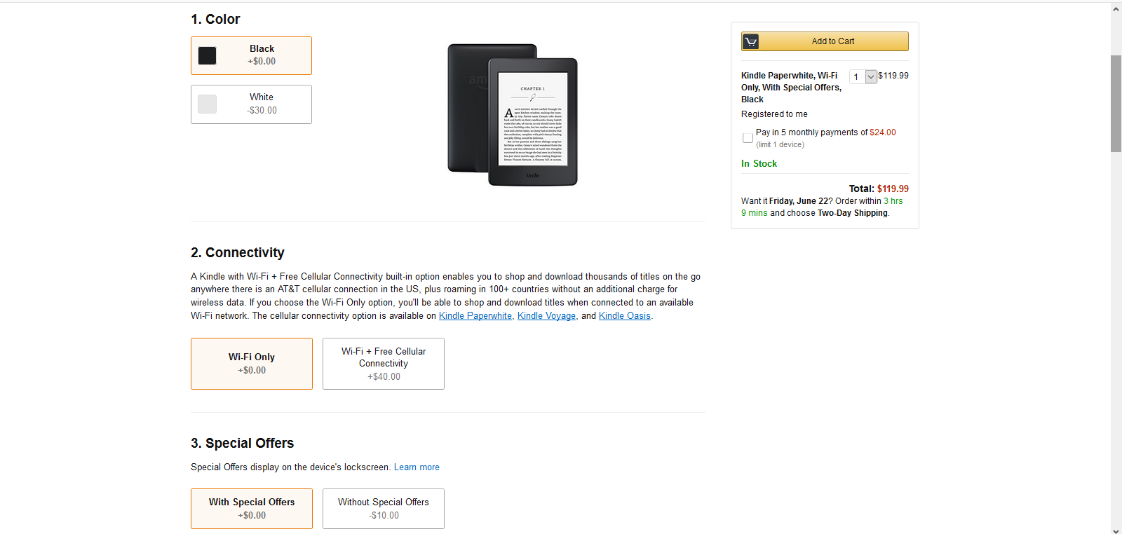 I noticed that, but you have to get to the Customize page. And now it's $20 to get rid of special offers (like it's supposed to be). $100 more to get 3G.