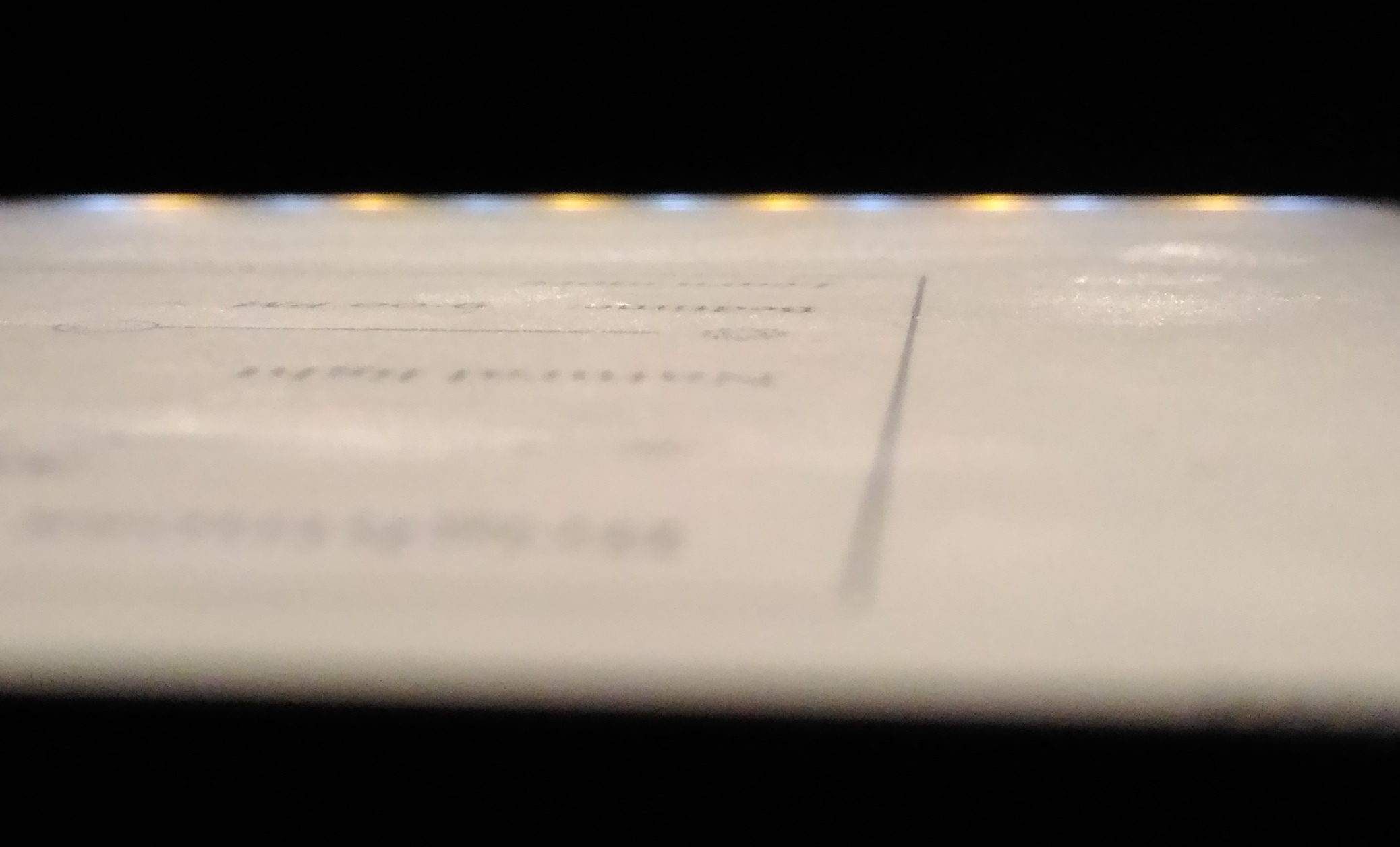 the LED are only in the bottom. The light travels within the body of the glass covering the whole display. Similar to fiber optics. Any cones at the bottom bezel I can understand although with better engineering it can be prevented. However the bright spots at the sides are clearly a manufacturing flaw/defect. It should not happen. |