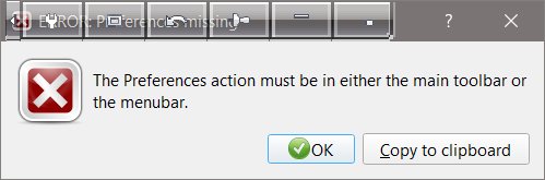 My main toolbar is empty and my menu bar has the Preferences item in it, if I remove it I get: BR |
