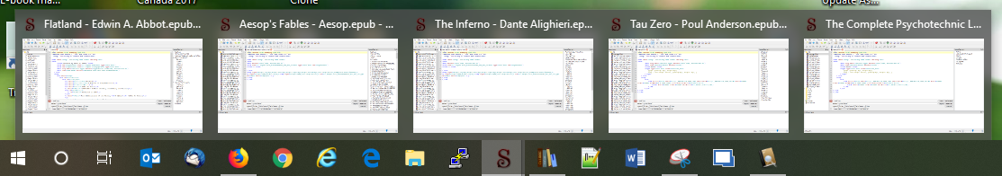 FWIW - I use an Office Addon (Office Tabs) that gives me an tabbed single-instance/multi-document interface for Word, Excel and Powerpoint. The existence of something similar can be the deciding factor when I'm choosing an application. How would a single instance multiple epub version of Sigil present itself? A dockable Epubs Open window with a vertical list would be my preference. BR Last edited by BetterRed; 07-15-2018 at 09:44 PM. |
