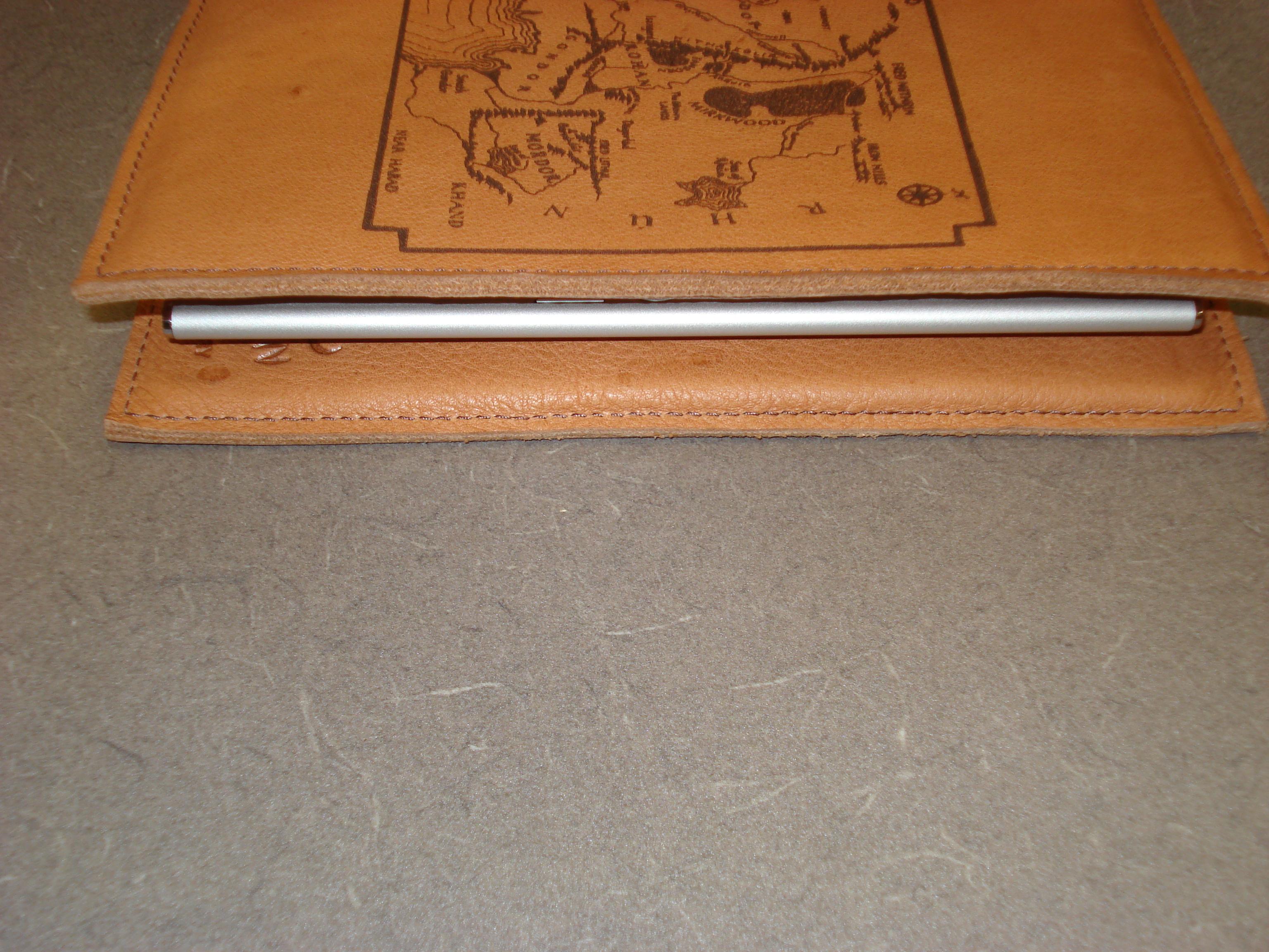 I saw this thread a little while ago and was insanely jealous of all the fancy covers. I had to try to find something that would look just as good, without resorting to trying to draw in Sharpie on the cover of my Reader. I ended up contacting an outfit in Calgary that does custom leatherwork, and here's the result... I LOVE it!