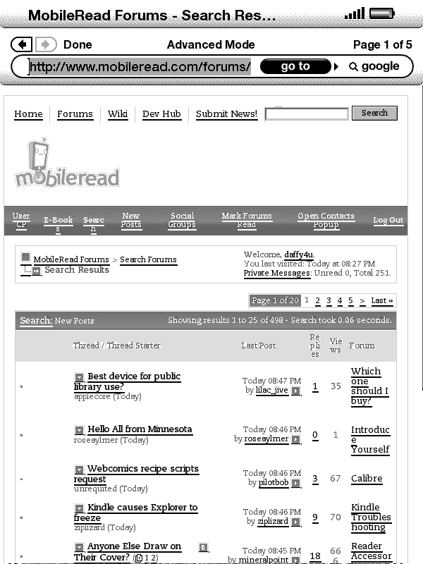 Surfin' MobileRead on Kindle 2 Screen Grabs