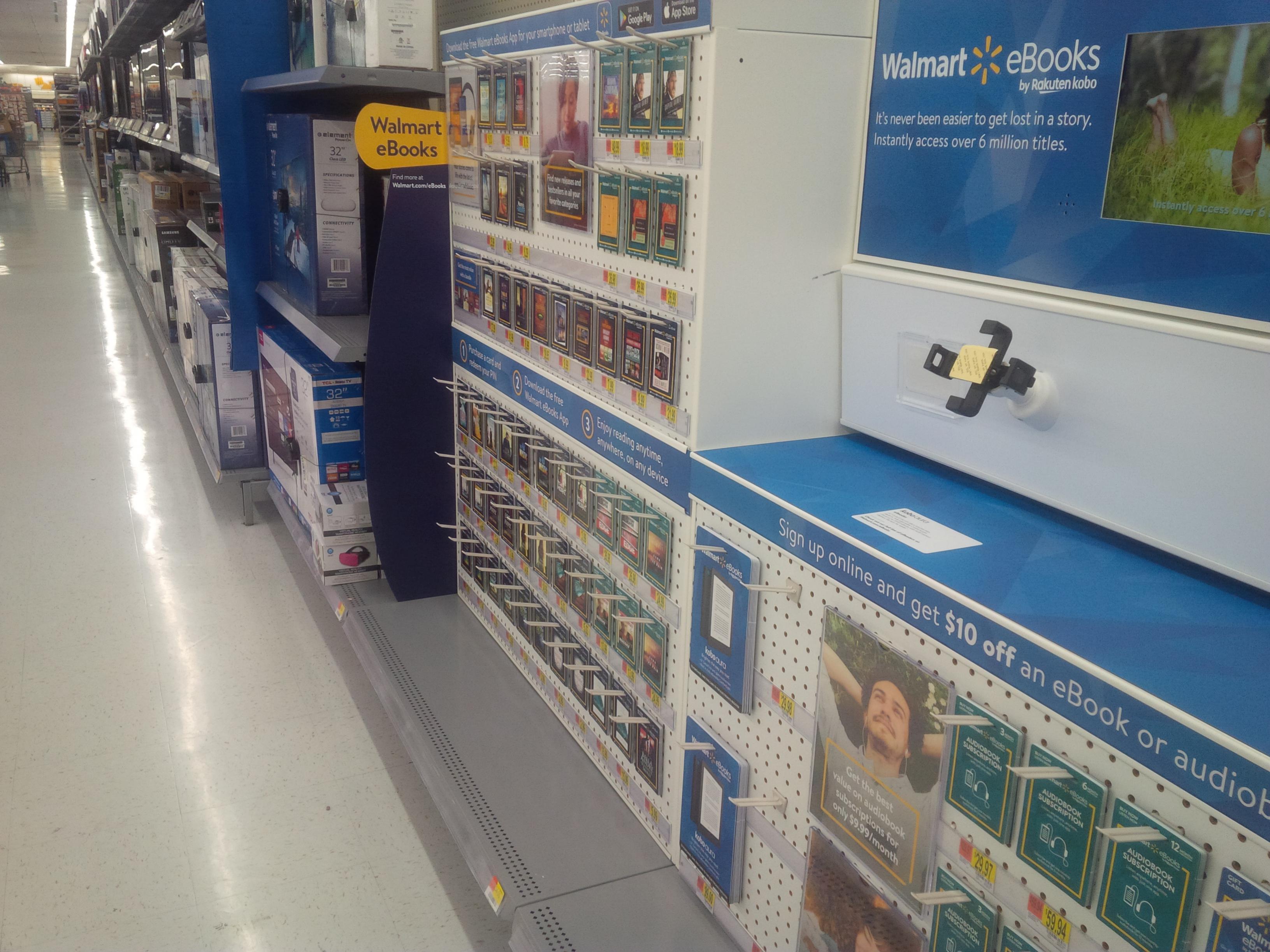 Okay, I went back to the one Walmart that has the eBook display so far (I had to pick my kid up from work). Two other nearby Walmarts didn't have anything set up yet ... so I'm guessing this is going to be a staged roll-out.