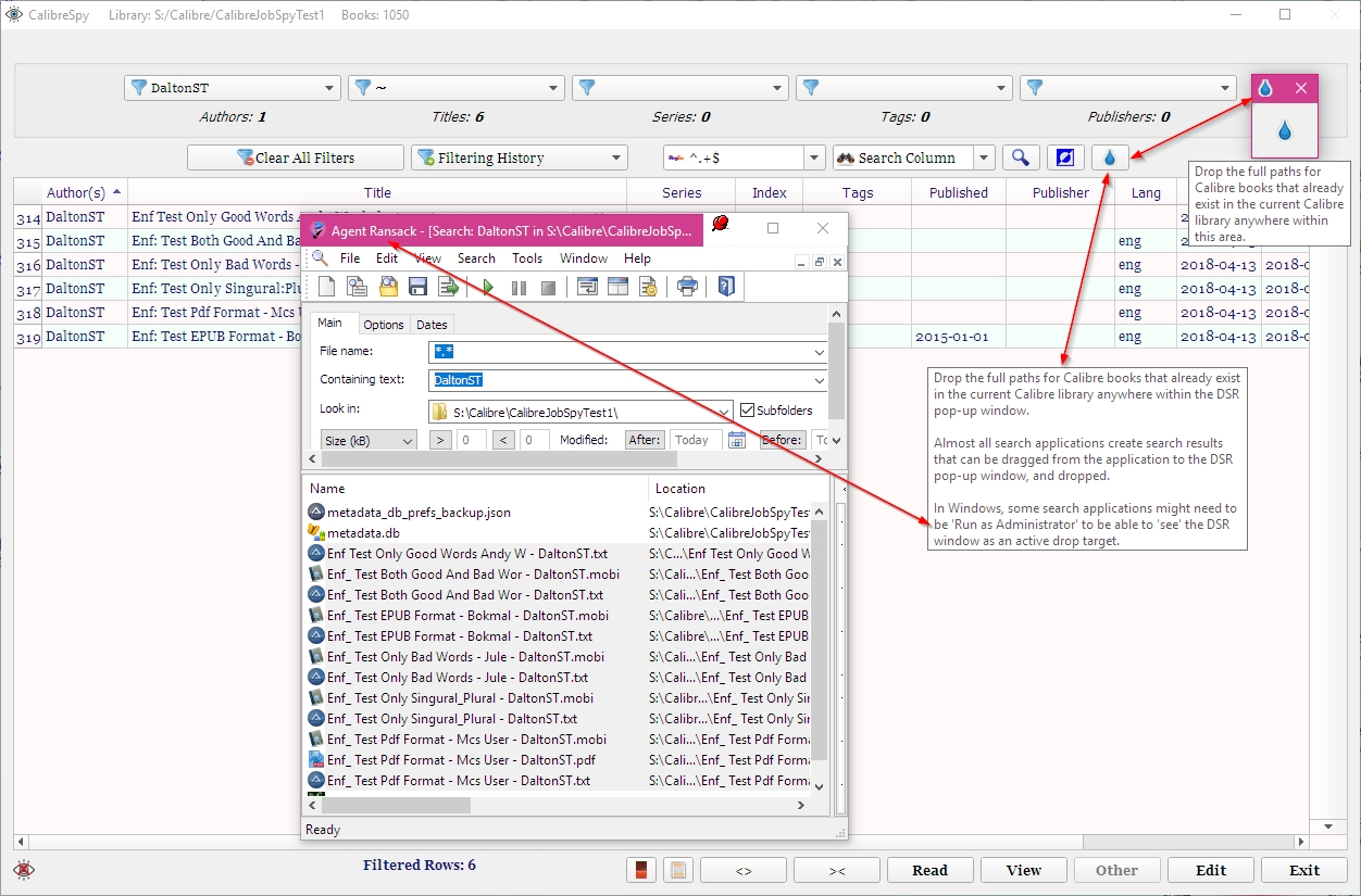 All books without a series are assigned a series of "" (Null or None are too ugly) so they can be easily filtered upon and the table sorted quickly. I guess I could change the Series Index to "0.0" for those rows, but the sort sequence would change if a "" were used, as numbers sort before empty strings. The counts are the counts of the choices in the Filter ComboBoxes, as the label says: "choices: 2". Series Filter Count is 2 because there are 2 choices: Series-Any/All and "", meaning no series. CalibreSpy does not do any searches, but rather does only filtering. Regarding global preferences, having them by metadata.db rather than globally would add some to the startup time, which I have optimized to be as fast as it is now. I guess I can make that decision a global preference, so if you do not want to wait for it on tiny tablets that have little juice to begin with, you won't have to. Personally, I would never use that functionality, which is why CalibreSpy does not have it, as I originally conceived it to solve my own issue with using the GUI on my 8" Win10 Tablet. As with all of my plugins excluding Zotero Metadata Importer (which I originally wrote as a favor, since I don't use Zotero (such software didn't exist back when I could have really used it), I originally wrote them for their primary user: me. As for adding "new" columns, I was waiting for that. Again, startup time will increase depending on quantity of new columns and the datatypes (normalized custom columns with 2 tables that must be joined are much slower than unnormalized ones with only 1 table to load). Also, loading "comments" that are data-length-long translates to using much more bandwidth to load the data, translating into potentially much longer startup times. That would have to be a per-metadata.db choice, which is another reason CalibreSpy 1.0 does not have that functionality (all choices are global in 1.0). Your comments about disabling Quick Switches in the GUI if CalibreSpy is running are confusing to me. CalibreSpy is meant to be run via a command file so it is entirely independent of the GUI. If the ability to run CS from the GUI is enabled by a user, then that instance of CS would die as soon as the GUI shuts down. Also, multiple instances of CS cannot be run simultaneously from the GUI. Another reason to use the command file. DaltonST |