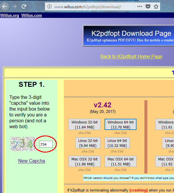 Hi everyone, I was trying to download k2pdfopt, but for any version I click on I get