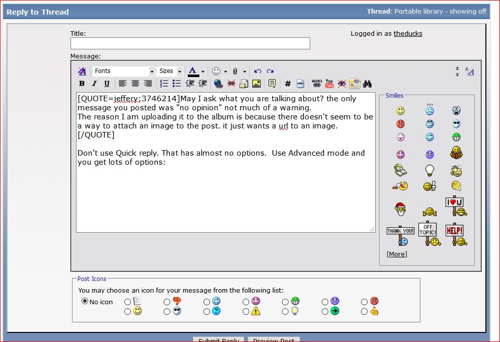 Don't use Quick reply. That has almost no options. Use Advanced mode and you get lots of options: