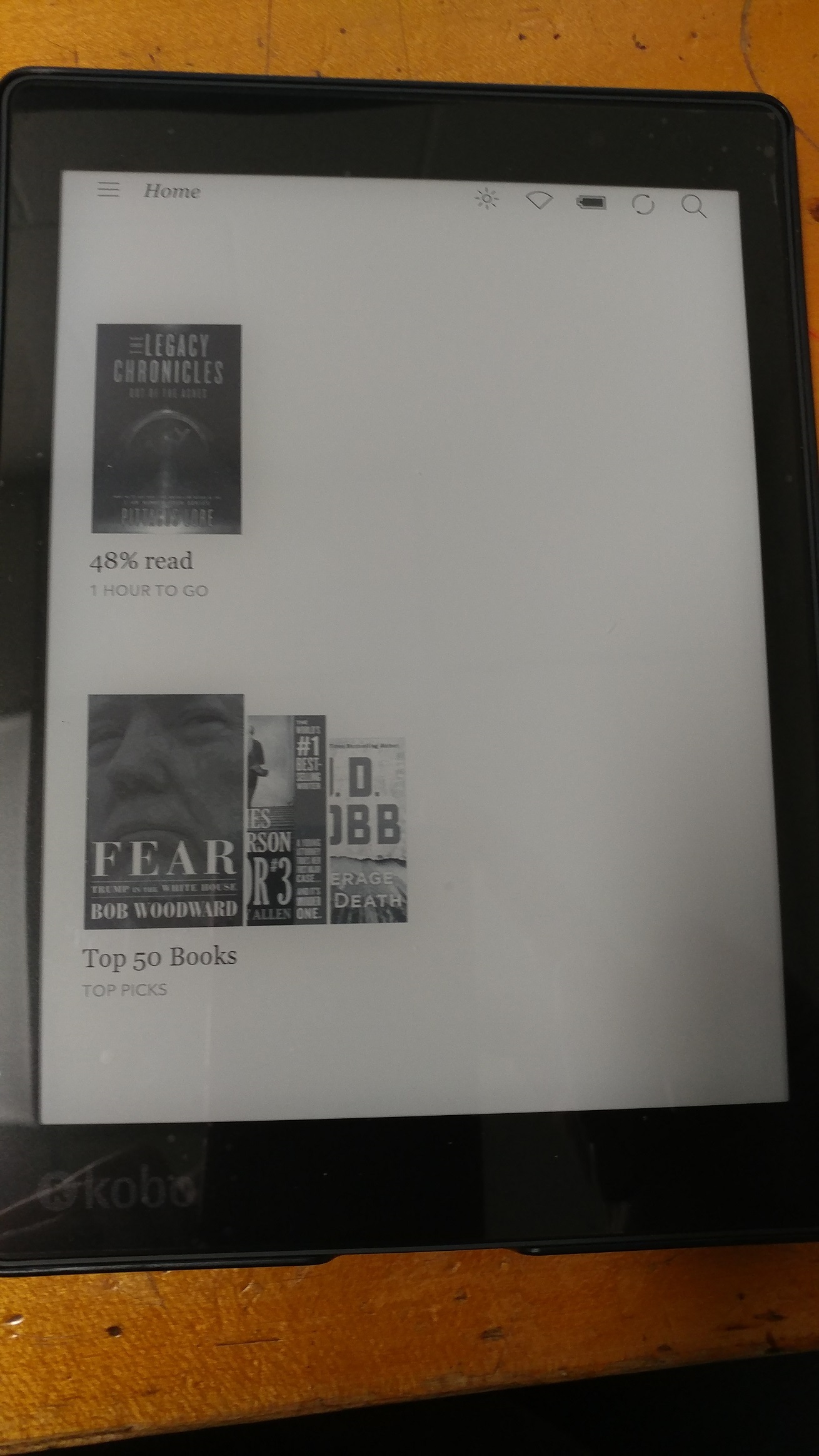 Top 50 Books, Top Picks in bottom left hand corner Kobo Aura One