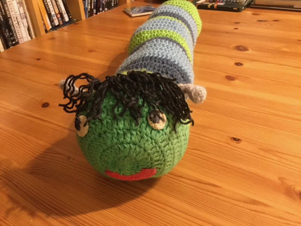 Der Winter naht und ich habe endlich mal wieder meine Handarbeit hervorgekramt. Als erstes habe ich mich um meine Bücherraupe/Bücherwurm gekümmert, die mal wieder ein paar Löcher im Fell hatte.
