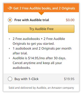 I'm offered the option to buy the audiobook just fine. It offers me the option to get it with a credit by signing up for Audible or below that to buy it outright for $19.95