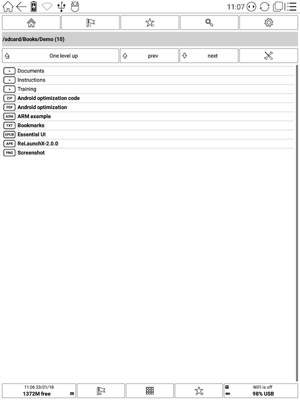 I can't figure out how to use this as a launcher. I don't want a file manager, but I thought you were able to use this as a launcher. I just got a Likebook Mars and wanted to try it again. In advanced options I have it set to use as a launcher when I tap the home button, but it still opens as a file manager. The advanced options also let it open as a launcher for the library button or shop button, but I don't see either of those buttons. I have work mode set to use advanced settings.
