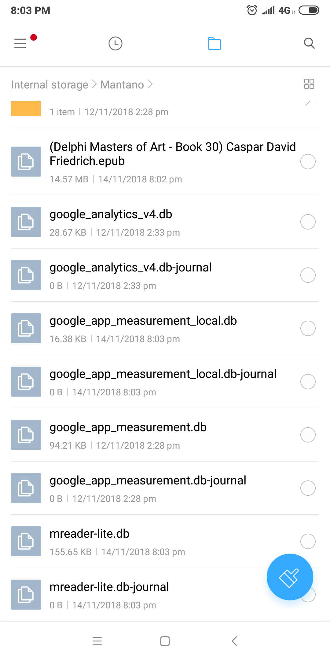 I have tried Moon Reader and Bookari and also PocketBook as AnotherCat suggested, but all three are copying the file into internal storage, as you can see in the screenshots I have attached (the file of almost 15 mb which is the ebook size so it can't be just metadata). I opened the book from file manager for all three of them and then chose the respective reader with the 'open with' option. |