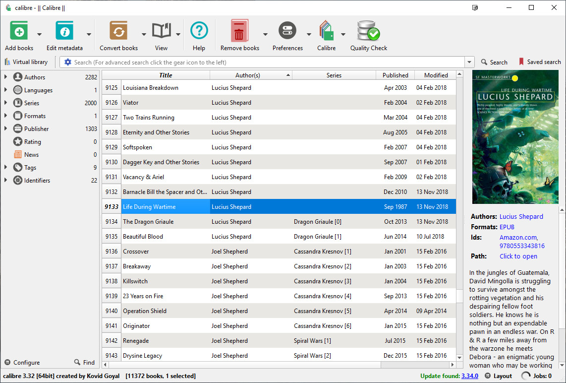 Moderator Notice Pleas follow forum guidelines on inline images. Use an attachment You can see that Life During Wartime is out of order...it should be up off the top of the screen. There are a few books like that. And I can't figure out what in them is triggering this behavior. I know it's not in the name, because I changed the author name on all the Lucius Shepard books using the bulk change feature, so they're all identical. Plus, the problem only shows up when I sort by series as well as author and date. Last edited by theducks; 11-15-2018 at 08:34 PM. |