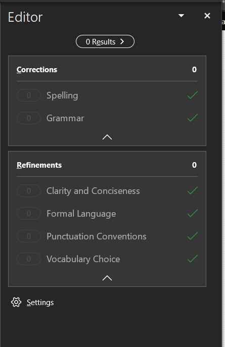 It allows one to focus on each type of error, which makes quite a difference. But you still can't type corrections in the Editor box itself And most of the "Refinements" don't offer any suggestions. BR |