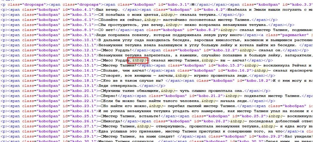 Диккенс Чарльз - .epub It contains non-breaking spaces: After conversion, they are replaced by & # 160; I managed to leave them in their original form only with the help of the command in powershell. Maybe there really is a problem in the system settings, I don’t know. P.S. The presence of characters & # 160; in the text leads to the following result: Last edited by konstantinus; 12-01-2018 at 05:29 PM. |