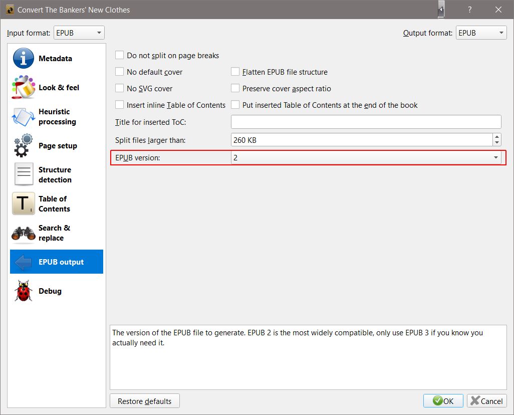 I just updated to Calibre 3.35, but when I convert and run through a validator its showing up as 2.0.1. Any help would be appreciated. Thank you
