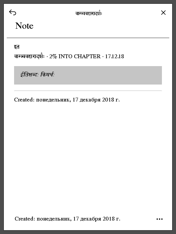 The note refers to the word iti that occurs in the book (since it was not easy to select the word, only ita was selected). I simply wrote into the note field what came to my mind at that moment to demonstrate non-initial vowels (two i) and consonant clusters (bd and rth).