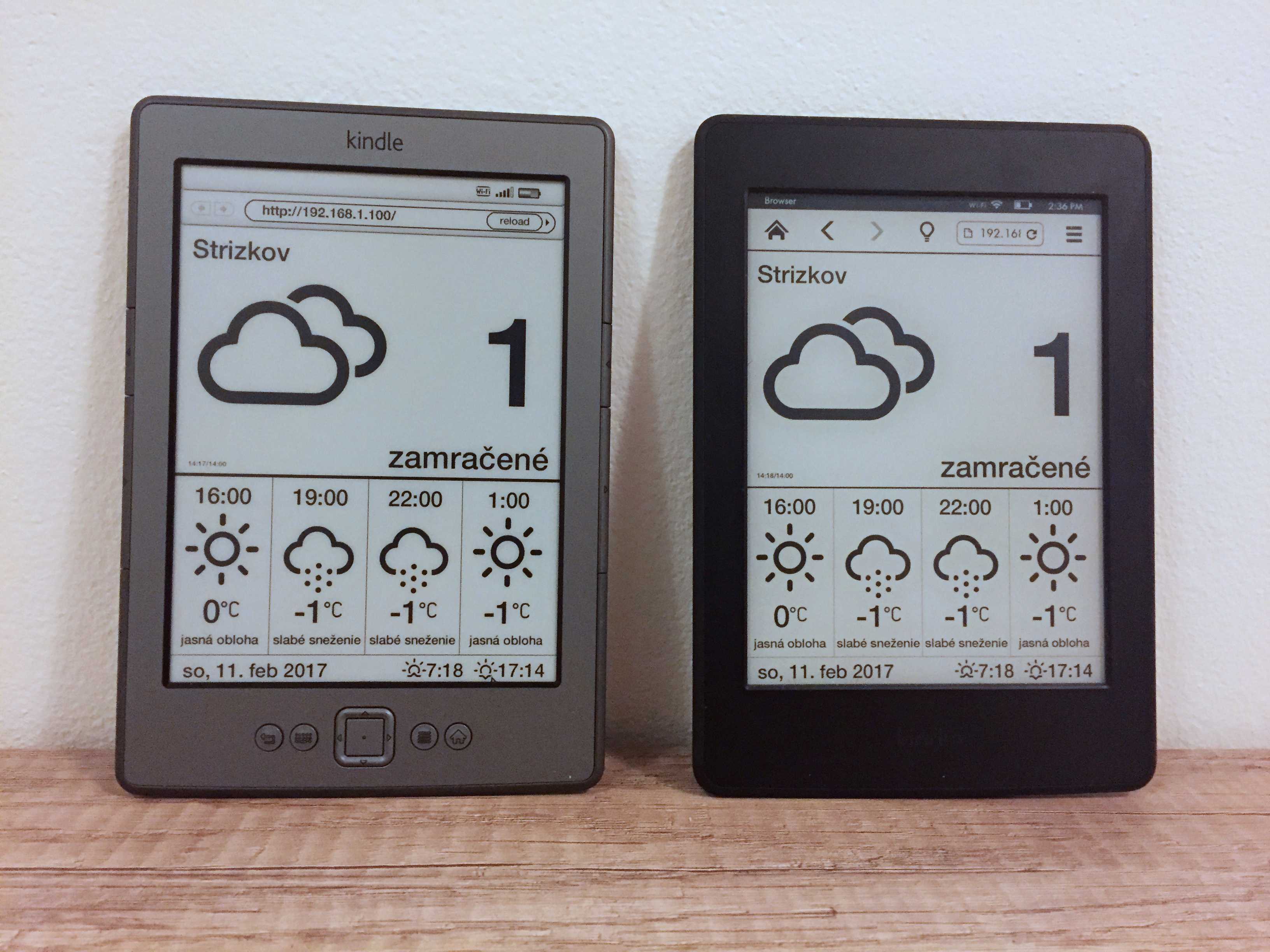 I would like to present my "kindle weather dashboard" project It is simple webpage with actual weather info and forecast. No jailbreak needed. Just disable screensaver, type URL and plug kindle to power source. More info on github page: https://github.com/matopeto/kindle-weather-dashboard |