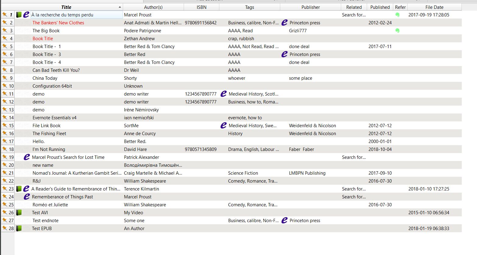 I've used a composed icon rule on Title if the column File Date is set, and I've changed the 'entity' icon rule I had for Related to a composed icon. I've also changed the icon rules I had on Publisher and Tags to composed icons.