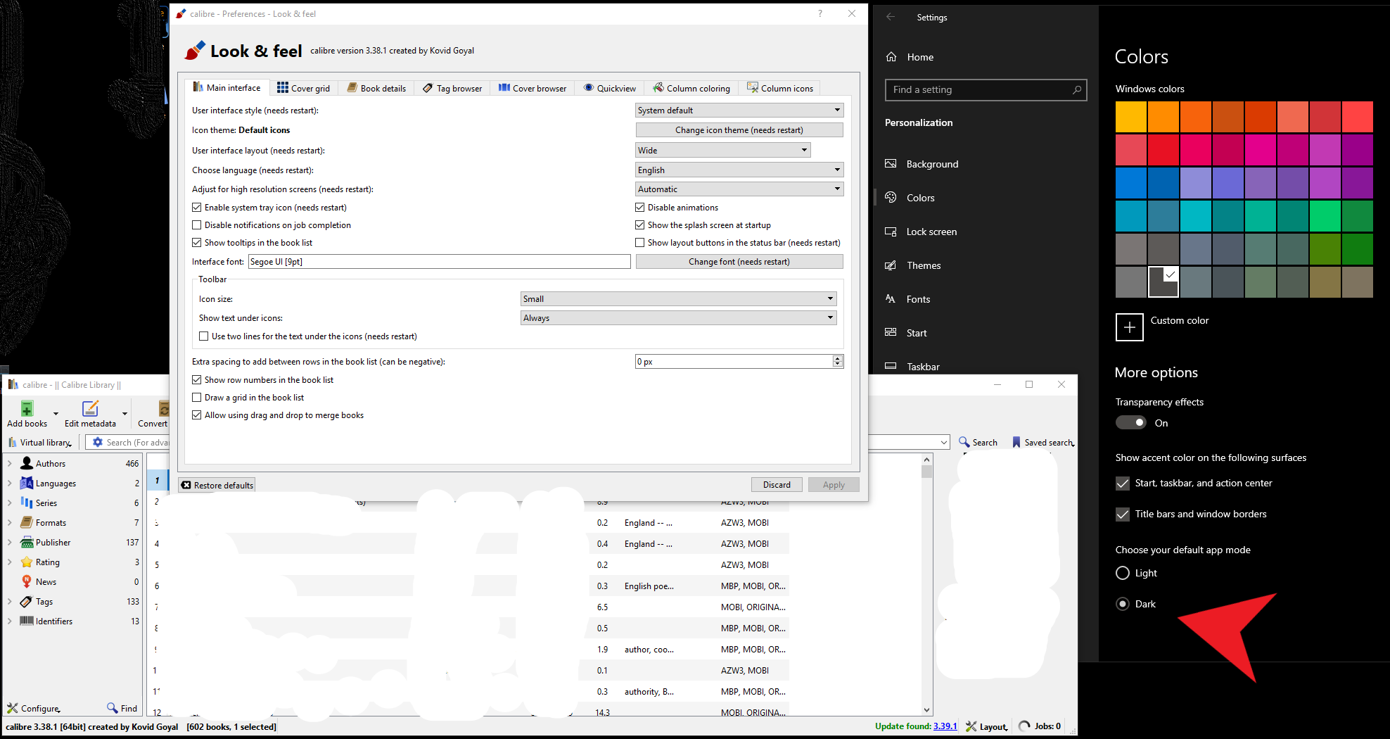https://www.mobileread.com/forums/sh...d.php?t=283145 ![]() https://www.mobileread.com/forums/sh...d.php?t=312899 https://www.mobileread.com/forums/sh...d.php?t=291484 https://bugs.launchpad.net/calibre/+bug/1738087 ![]() that whole "you add the environment variable "CALIBRE_QSS_PATH" and set it to be, well, the path" is beyond me without step by step instructions, but I would love my calibre to look more like this: https://imgur.com/bwLlyQO The Job spy plugin doesn't help either, yes it may recolor SOME of the GUI but not all and leaves the GUI looking like crap. While most people on smaller 15" and 18" monitors and CRT monitors aren't going to have a HUGE problem with the AWFUL color of the GUI interface, those of us that work on 25" plus monitors: WANT TO GOUGE OUT OUR EYES, while trying to use calibre. I don't use calibre to read anything, just to backup and import/export my books to my different devices, but firing up this app/software is physically painful on the eyes. Now I know everyone says "you can get Calibre to use your colors by choosing System default for the User interface style under Look and Feel in Preferences." but this doesn't work in Windows 10 please see screenshot from below: https://imgur.com/POWzbrl now this clearly shows that I have windows 10 set to dark (see red arrow in bottom right) and that I have the user interface style set to system default in calibre, and you can see these have already been set because it's showing apply as grayed out, and you can see that it's still the blinding white. Now I know for what ever reason the creator of calibre has some hangup about a dark theme: "Kovid Goyal (kovid) wrote on 2017-12-14: #5 Read my lips, NO" ![]() I'm going to guess he doesn't sit in front of 2 or 3 25" LED monitors, but probably still uses a . Which is what most of the web and applications are still built to be view on . I mean the white paper background was great on those old monitors, but as we move forward to larger and larger screen and brighter and brighter screens, developers need to re-think our designs and their personal hangups. ![]() And NO it's not an option to go in and change the specific color settings in my operating systems settings for one single application. Every other application I use displays just fine on my screen, all of them either have a built in dark theme, generally muted colors, or is so small that the light color isn't a problem. Why should I have to go in and change my operating system colors for ONE application? This will ruin the experience of all the other application. ![]() So someone please those of us that aren't Linux users (ok there is apparently not a smilies for beg so insert begging here) and in advance
