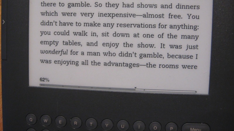 This was the best system, remember it? And it gave me an incentive to read as much as I could in one sitting, as the little start arrow from the start of your reading session stayed in place until the screensaver kicked in. An excellent, simple visual representation of where you are in a book. I wish they had kept it, at least as an option.