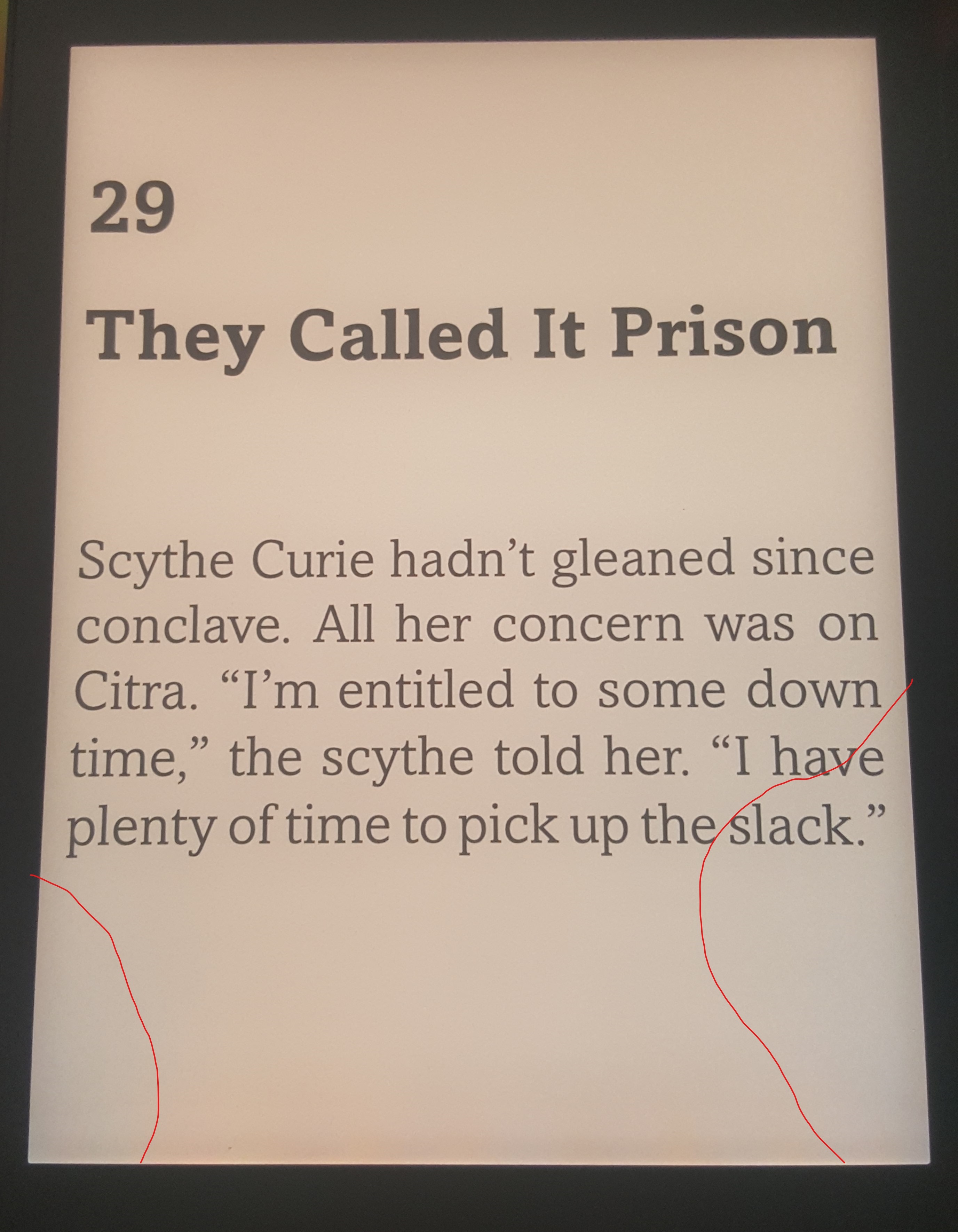 Sorry if it sounds dumb, i was wondering if it's possible to fix or at least tone down the uneven lightning in kobo devices using an outside program? Since Kobo is a much open platform i was wondering if it's actually possible. Mine is not as bad as some pictures i saw (i think?) but it is still distracting me... I don't have the green blotches, but both of lower corners are grey-ish. For anyone interested i attached a picture, thanks! |