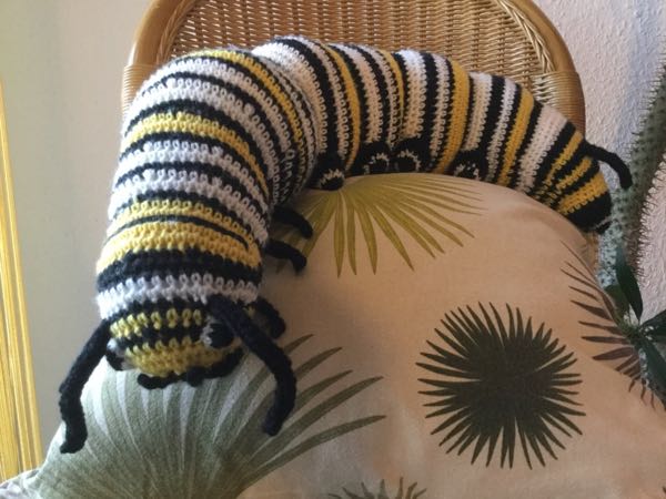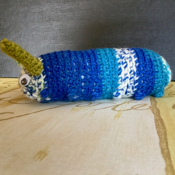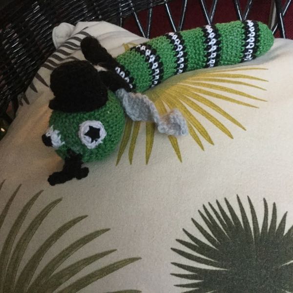 Weihnachten naht mit großen Schritten, und ich habe endlich die Raupe für den kleinen Sohn eines Kollegen fertiggestellt. Diesmal hat sie sogar Füße und geht daher wohl nicht als Bücherwurm durch.