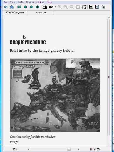 I could do with some kind(le) help. I'm working towards the publication of my daughter's book which'll contain a large number of images (optimised to keep the weight down). I'll be using the same HTML structures for web promo, EPUB and Kindle, and only slightly modified CSS for the three.