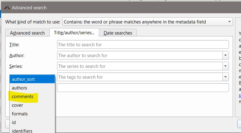@madeleinelevy - if you search for comments:true does the book show up - if not then that seems bizzare, not true, not false - must be fake truth ![]() Suggestion - the Bulk Metadata Edit dialogue has a button to set Comments to a common value - you'll need to select at lease two books, set them to something, then set them to nothing. If all else fails save the book, remove the book, re add the book - with title and author from file name - i.e. no extra metadata. BR |