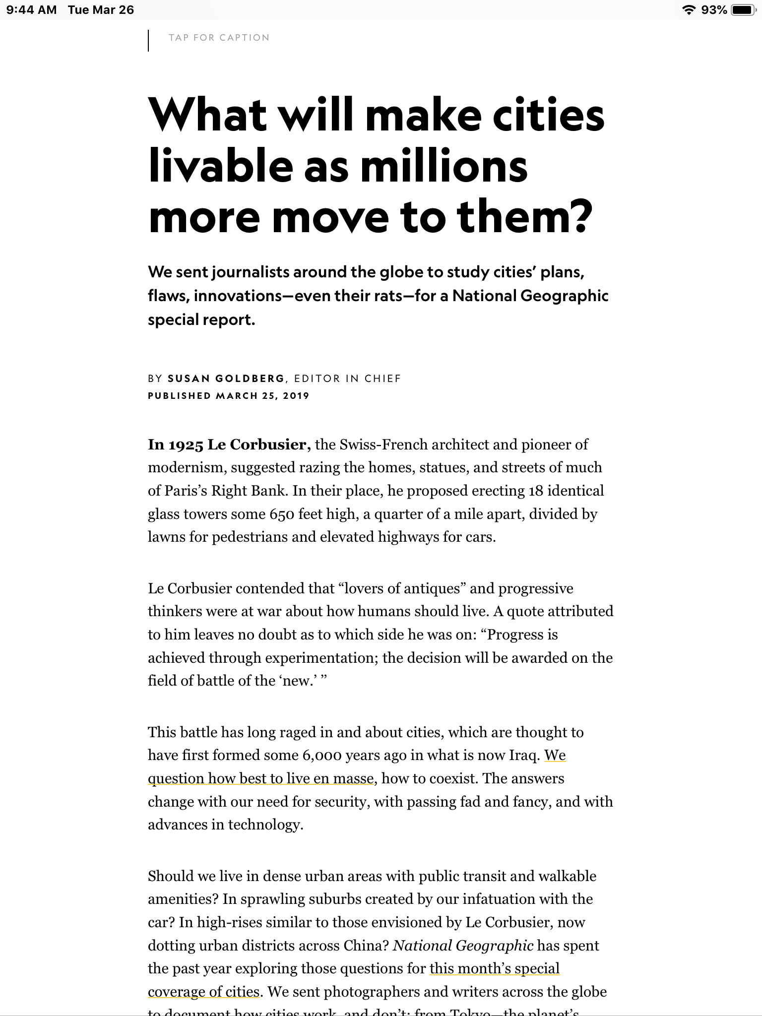 Here are some screenshots of the National Geographic magazine taken from my iPad Pro 9.7" this morning. Really large margins, but at least it is readable. The screenshots I posted from the Smithsonian magazine were barely readable on my iPad. I am not going to install iOS 12.2 on my iPhone 7 because my new iPhone XR arrives today and the 7 will be sold on eBay, so I see no need to waste my time installing the latest updates on it. I will install them on the iPhone XR after I get it set up, but that might be a while. I wonder what magazines like Smithsonian look like on iPhones? Probably too tiny to read. If someone has iOS 12.2 on an iPhone and the free trial of News+, please post screenshots of the Smithsonian and National Geographic magazines. Thanks. ......... Last edited by OtinG; 03-26-2019 at 11:58 AM. |