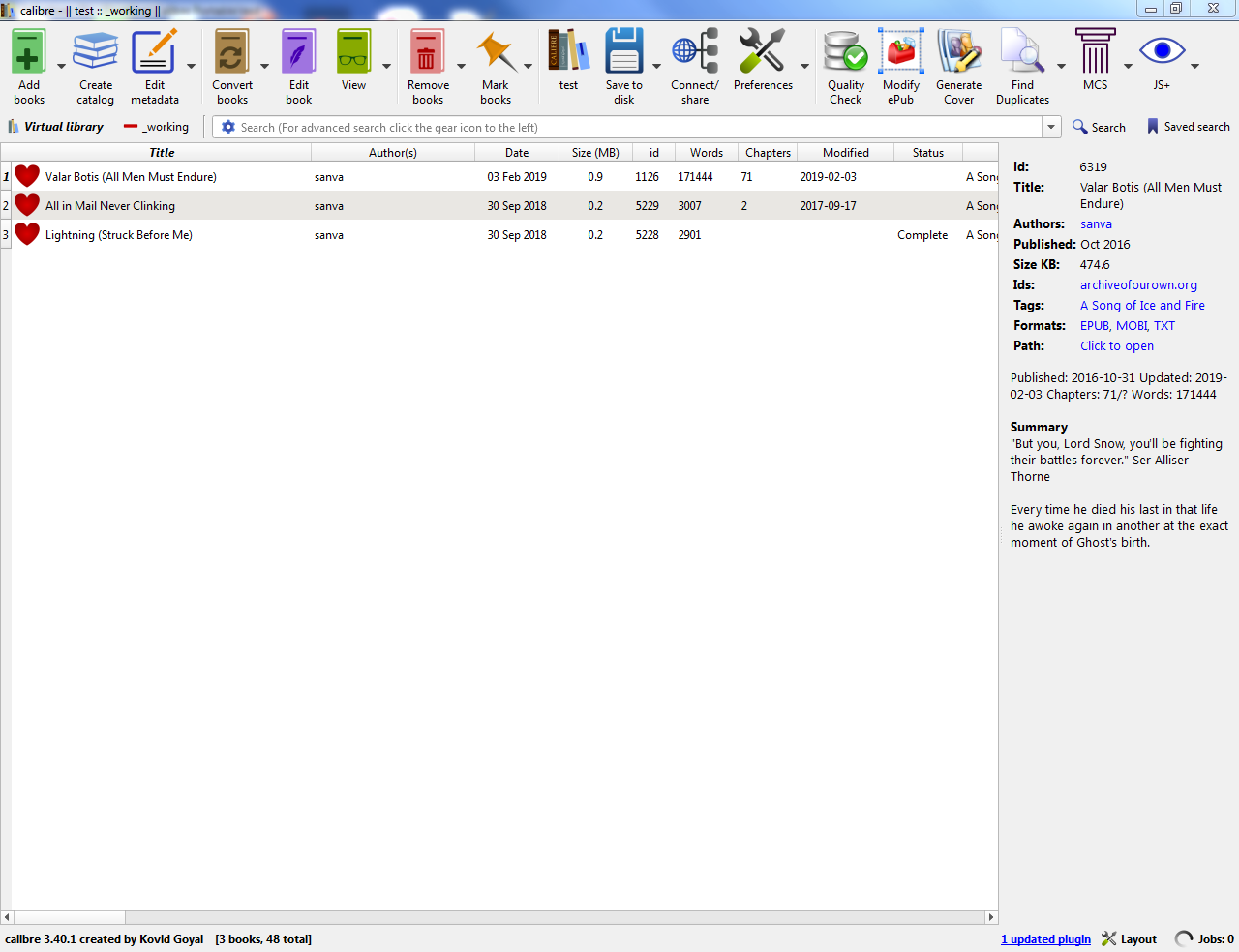 I rarely ever use the individual "Edit metadata" dialog. I always bulk edit like 100 or so records at the same time. I just noticed that as seen in the attachments in post 35, I was getting extra line spacing in the comments in the book detail window when previous versions never used to do that. If the comments field is required to begin with HTML tags, then it's the bulk s&r that doesn't automatically add the <div> tags. Although considering bulk s&r may be used to intentionally strip HTML code, that's probably just good behavior. In any case, easy enough to bulk add the tags myself if Kovid decides this change from the older versions is intended behavior. |