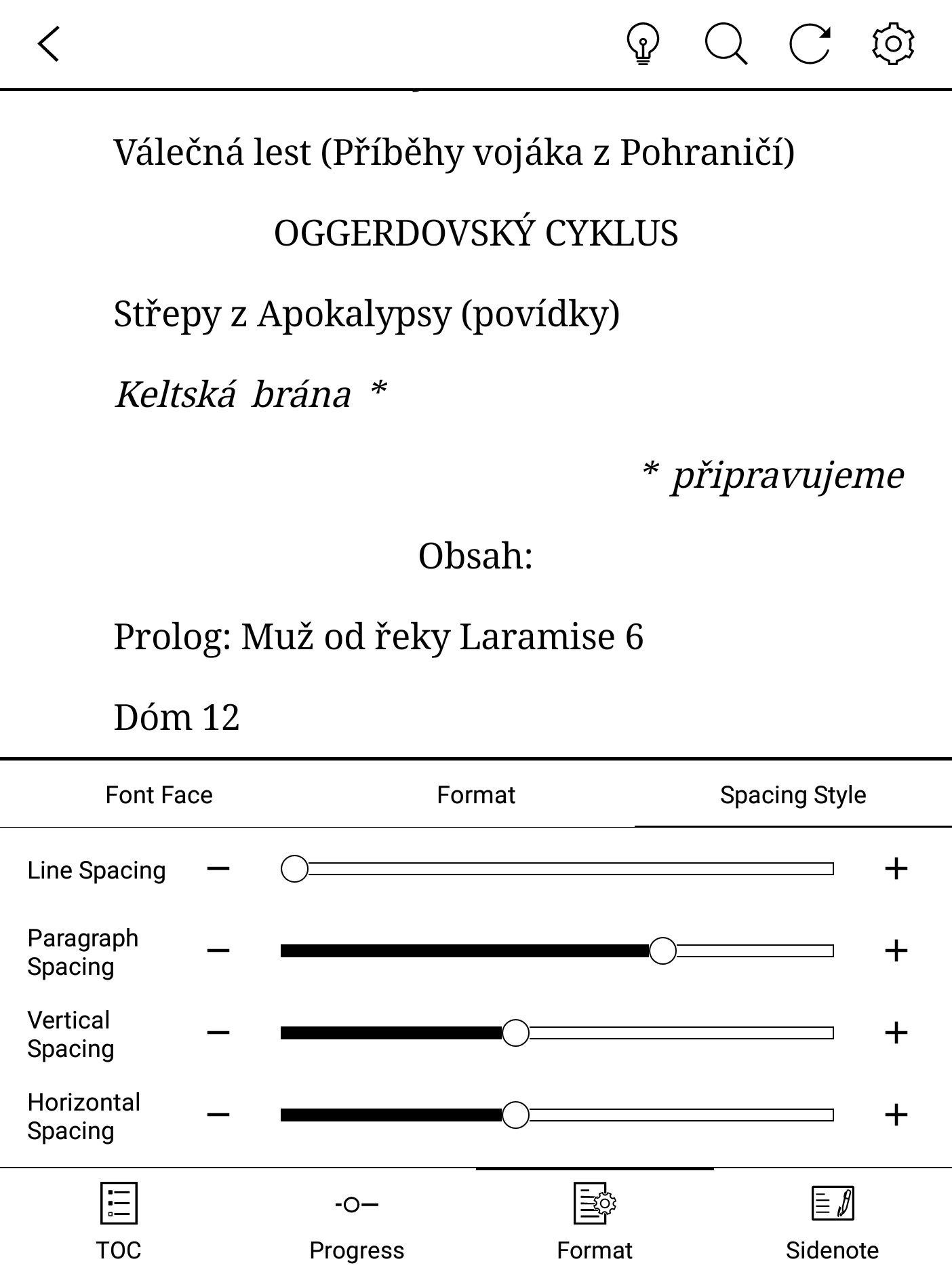 - Yes. But even with spacing configured as a minimum, the spacing is still pretty important. - "Paragraph spacing" change nothing, not the spacing between the lines. * For all the books I have (ePUB), not just Calibre or whatever. - But when I format the same "ePUB" book to "PDF", no problem. - "In the worst case" -> "see photos" * Normal vs minimum line spacing. - Nevertheless, on the other apparatus like: 'KOBO, INKPAD' the same books function perfectly well. Only on ONYX BOOX Nova (ePUB + Onyx_Reader 3.0) I have a special display, TOC not work coretly. * I am shown ePub as if scattered (difficult to describe) - Because of this, I use BOOX NOVA only for PDF files and I have to use a different "Reader / Inkpad 3, Kobo) for ePUB books. *Just a little reminder of NeoReader. Onyx seems to me a lot weak in terms of displaying information global about the book, just "the page" (strict minimum), that's all. There could be at least % of reading, or remaining temp in the book... PS : I leave you a book (AguaTM), so that you can test for yourself. *I have deliberately removed some book pages from the book so that I do not violate copyright. Last edited by Michal Jancik; 04-29-2019 at 11:08 AM. |