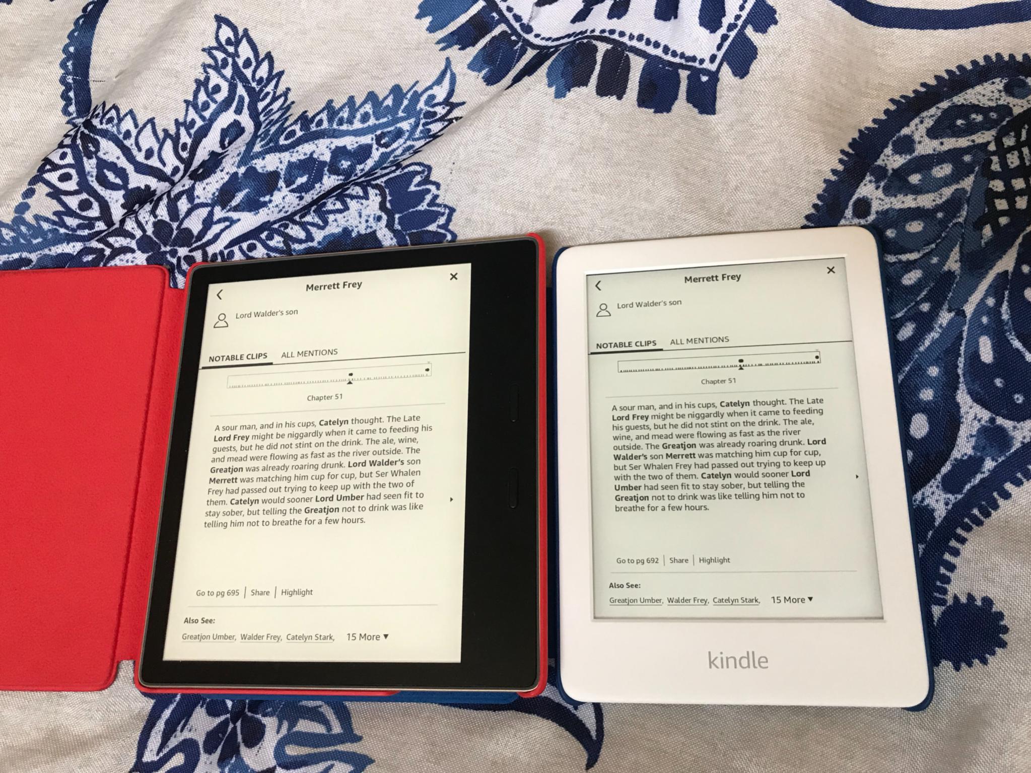 Glad so many found my picture helpful, and to hear other positive opinions about this kindle. I’ve now been reading on it for a couple of days and have fallen for it in a way I never did for the Oasis. After being used to the Oasis, I’m actually enjoying the smaller form factor and the warm touch of the plastic casing. It feels more bookish and I have the feeling of reading a well-loved paperback. (I purchased the amazon cover, which definitely helps give this feeling). I’m attaching another picture, this time of the same X-ray page on both my Oasis and new Kindle basic side by side. The new one appears so crisp by itself, it’s only when you set it side by side that you notice a difference. These are both at light 18, I actually think the basic looks bolder too. (It also looks soo much better in real life than in this pic. Even if it goes on sale for Mothers Day, I’m not returning this one for a cheaper one. ).