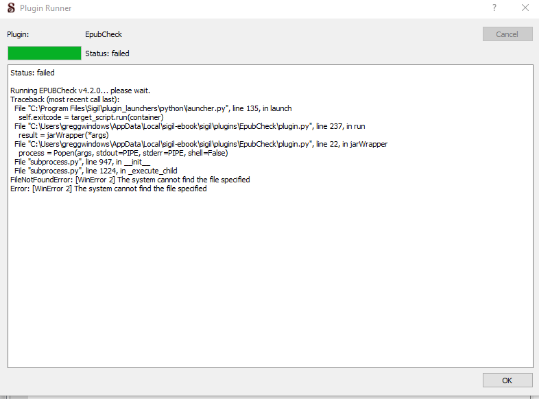 Problem getting epub check in Windows 10 computer