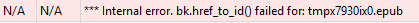 The error message says "Internal error. bk.href_to_id()failed for:" and then there is what looks like a temporary file name which is different each time. See attached screenshots for examples. |