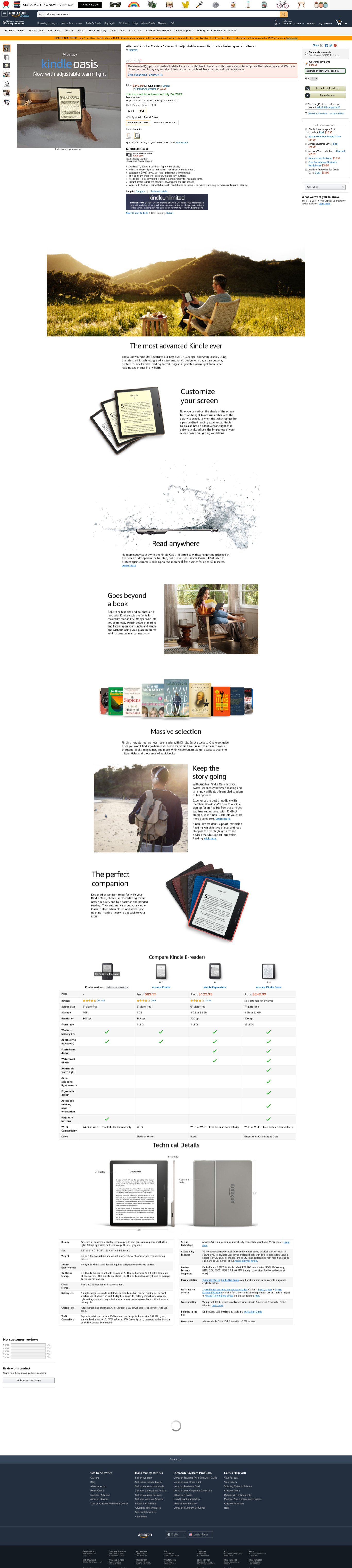 OTOH, even if I select the WiFi and Free Cellular version for the Oasis or the WAN version for the Paperwhite, the tech specs does not mention cellular connectivity for either the Oasis or the Paperwhite. On yet another hand, at least I don't get to see a Special offers variant on Amazon.ca. |