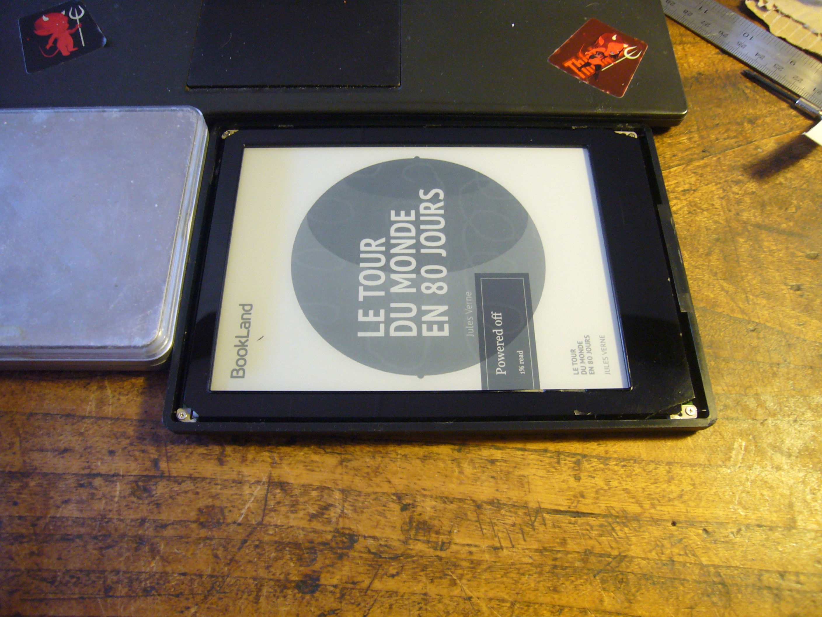 I really should go back and tape the display down properly (so it won't slam into one of the corners if the reader is ever dropped). Well, I assume that what would happen if the display doesn't stick to its backplate proper. Not testing that. I just didn't have any suitable tape at hand. Quote: