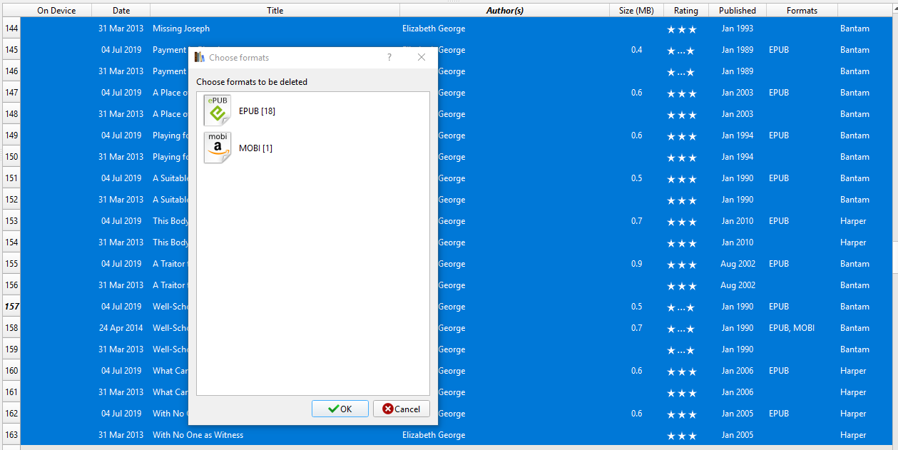 Well the imported books shows all formats (epub, mobi, opf, txt, etc.) but the Delete option only recognizes Epub or generic ebook formats, as you can see it clearly is ignoring the *.opf books.