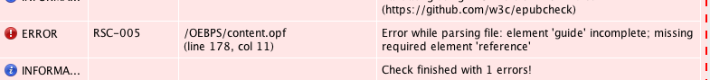 The guide section (if present) must contain at least one reference item. I don't know enough about the epub in question to suggest the best course of action.