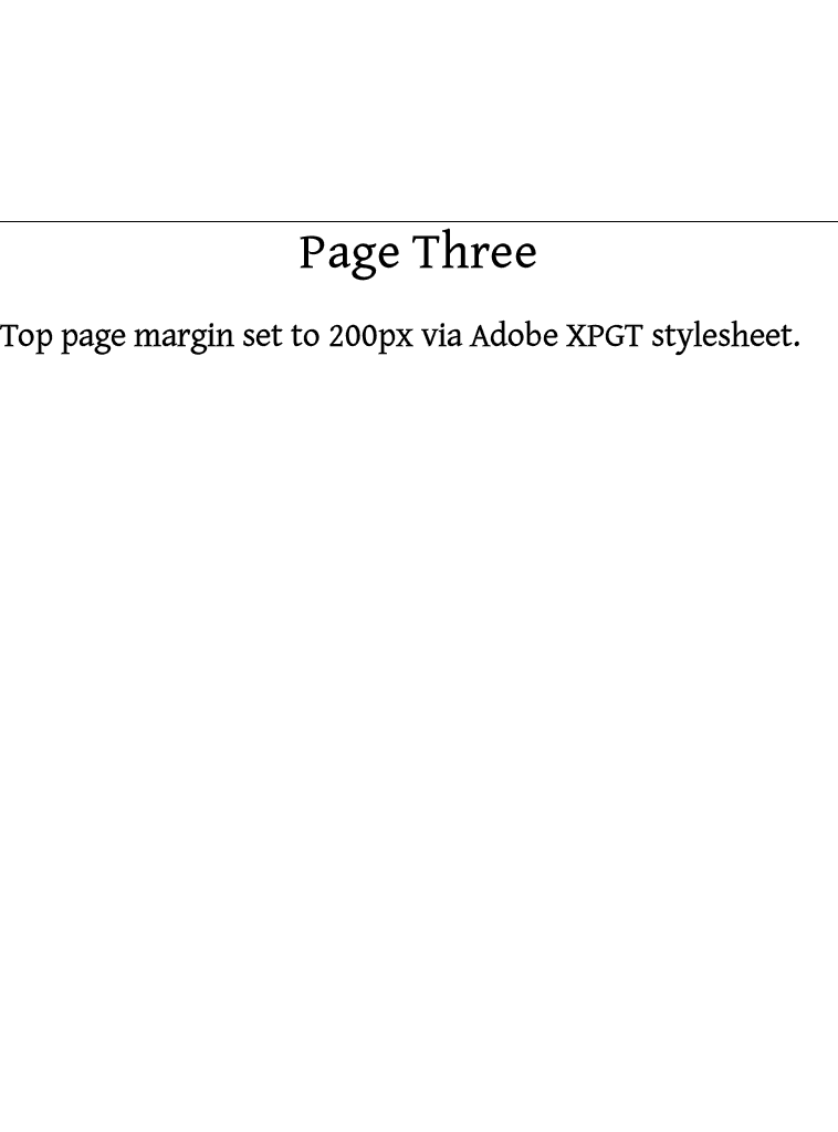 If the patch isn't working, could someone who doesn't have either of the `ePub fixed top/bottom margins` or `ePub fixed/adjustable top/bottom margins` patches enabled check whether ePub page margins are still working in this firmware version? You can check on a device without the above patches enabled by sideloading the attached ePub book. If page margins are working properly working then there should be a large top margin on pages two and three, as in the screenshots (from my Glo running 4.8.11073): |