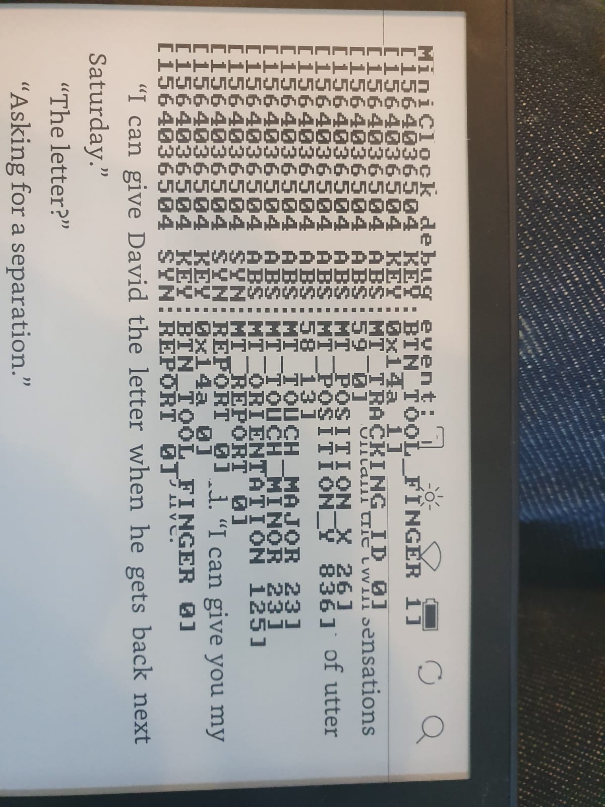 so... does it print but not update the clock? then - just what did it print? ;-) (the debug output also comes with an additional 3 second delay so... with debug on, if you turn page too quickly, not updateing is normal) the interesting question is also if it prints anything when not interacting with the device at all ... basically there are events coming it that cause cooldown to kick in (when not in standby) I previously assumed the magnet event only goes crazy during standby (sleepcover closed) and not while reading... but that assumption, might be wrong, or the input devices on the forma do something else unexpected it's frustrating because everythign seems to be working just fine - on my H2O Last edited by frostschutz; 07-25-2019 at 03:38 AM. |
