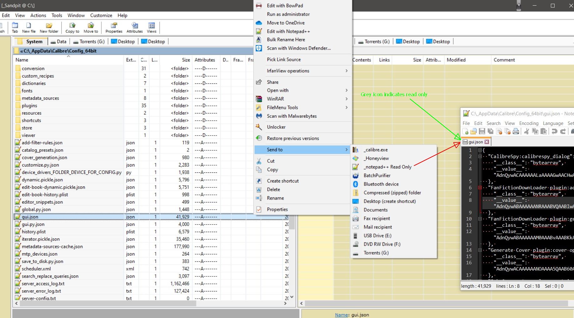 @Rellwood - if you need to peek at config files while calibre is running, try using a text file Viewer rather than a text file editor like Notepad++ -- much safer, some will detect changes and offer to refresh.