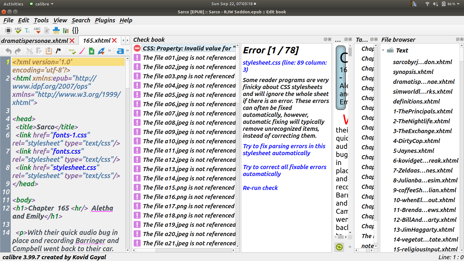 My prior epub2pdf conversions in 3.47 worked good except for sometimes cutting images horizontally at bottom of page, then showing full image again at top of next page. I wanted to test if 3.99 had fixed this and ran a epub2pdf conversion on the unaltered file. It failed. I tried calibre's self-correcting feature, but it failed again. Enclosing attachments. Best regards, Pop