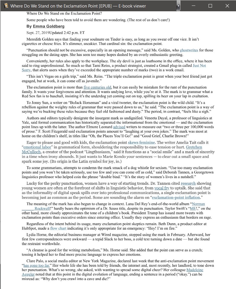 The Check Book tool in the calibre editor doesn't complain nor does the Epubcheck plugin in the Sigil editor. If a cover is mandatory would have expected one or both of them to complain. I discovered what happened to the margins, they got reset to default settings - I must have clicked wrong button at sometime. I really miss font resize buttons, and search. BR Last edited by BetterRed; 09-28-2019 at 01:24 AM. |