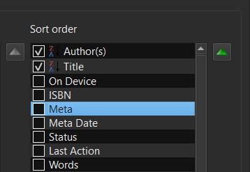 @JimmXinu - sorry, I should have been explicit, I'm not referring the green column ordering arrows, but to the in-list sort direction arrows (↑ ↓):