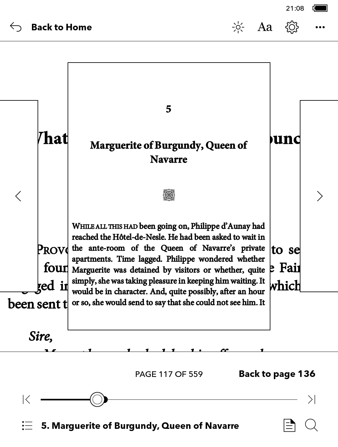 It will be of most use to those who read books in languages not officially supported by Kobo, e.g. Russian, Vietnamese, where Kobo's default Avenir font is a poor choice for displaying the necessary unicode characters for chapter names. It can also be used by those who just want to change the scrubber's cosmetic appearance. Part 1: Customise these 3 buttons: - Left & Right 'Back to page nnn' - Current chapter name (bottom left, next to TOC icon)