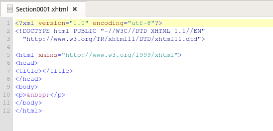 I think I figured that out. Just take whatever is in the <body> tags and add it to just under </head> tag. Then the only thing I would need to be concerned about would be if the stuff at the top changed. Or would Sigil automatically update that stuff every time I opened the template? I just set up a template.epub. One more question--I don't have to do anything with as you say the default content.opf. It's just there, right? And how do I open the original html file into the epub template? Thanks again! Last edited by Gregg Bell; 10-03-2019 at 08:30 PM. Reason: one more question and yet one more |