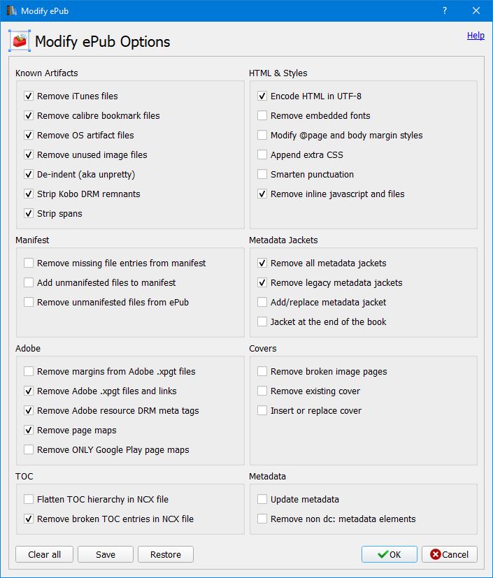 Attached is a scrambled copy of the ePub and a screen grab of my Modify ePub settings. |