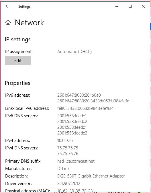 WDC connects via the local Network (in this case 192.168.0.x). It does not care where the Wifi A/P is. IMHO Having the 'server' wired is the best , most solid, solution OP Open your WINDOWS Network settings: Ethernet. What do you see there under IPV4 for your Wired adapter? |