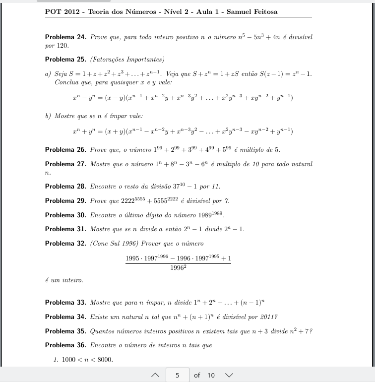 "Problema 26.", "Problema 27.", "Problema 34.", "Problema 35." and "b) Mostre que se n é ı́mpar vale: