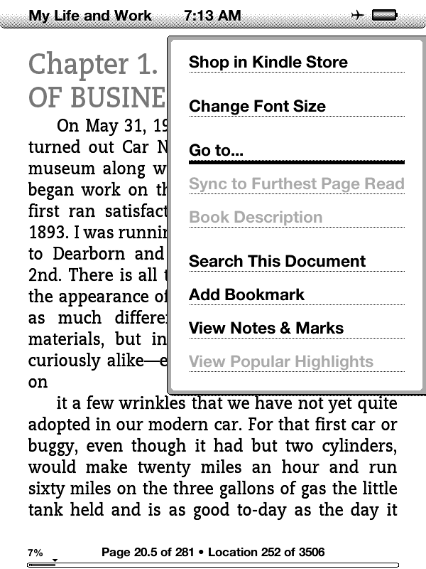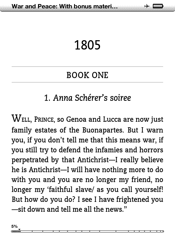 It not only showed progress in the book, there were tick marks for each chapter. You could not only tell where you were in the book but also where you were in the current chapter. It was also usually easy to tell whether there were appendices, indices, etc at the end. I also really miss being able to flick back and forth between chapters with the joystick or d-ring. I've gotten used to much of touch screen functionality, but for some things I still strongly prefer buttons. |